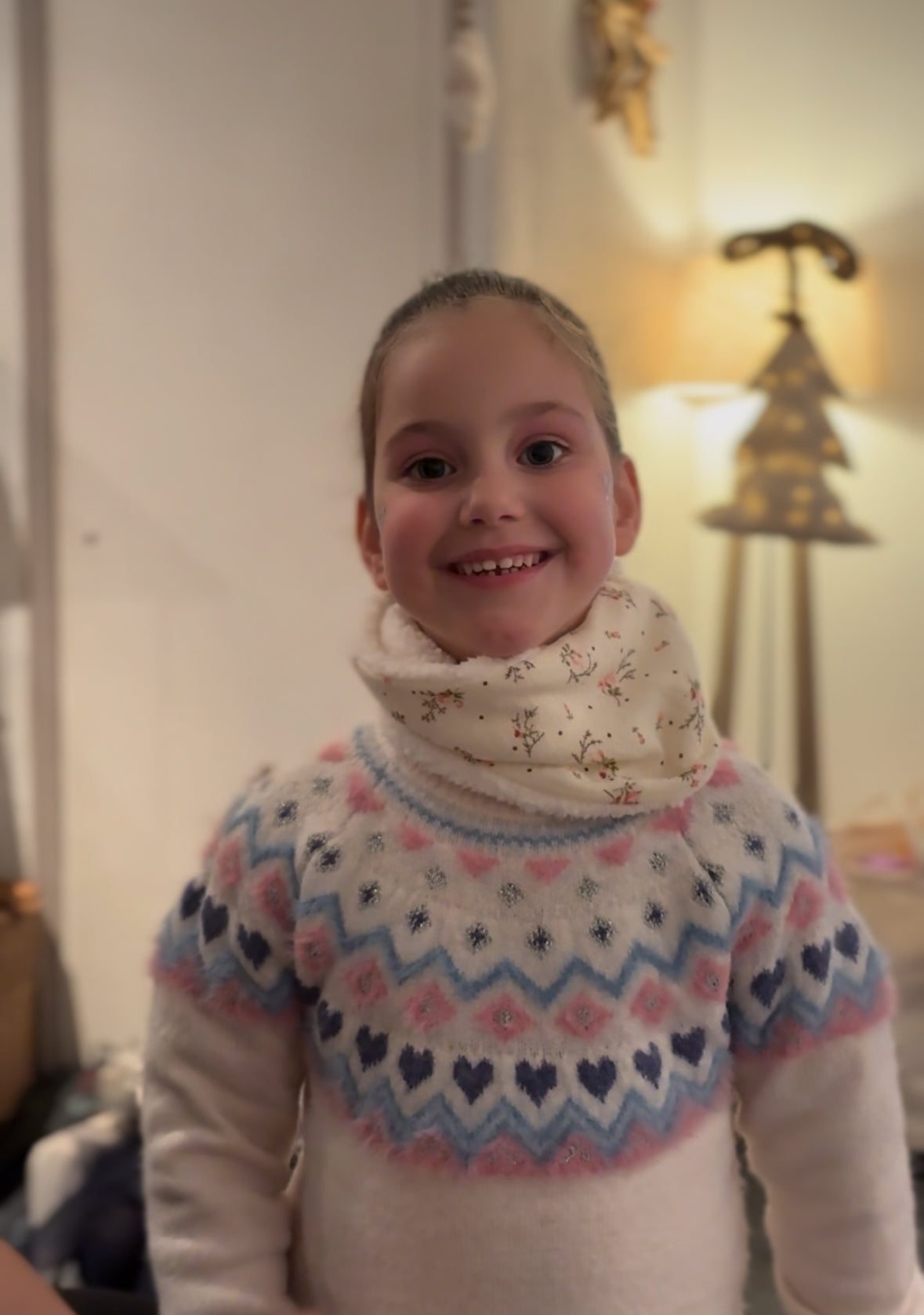 Facile à enfiler, ne décoiffe pas l’enfant, et garde le cou bien au chaud tout en étant confortable.
