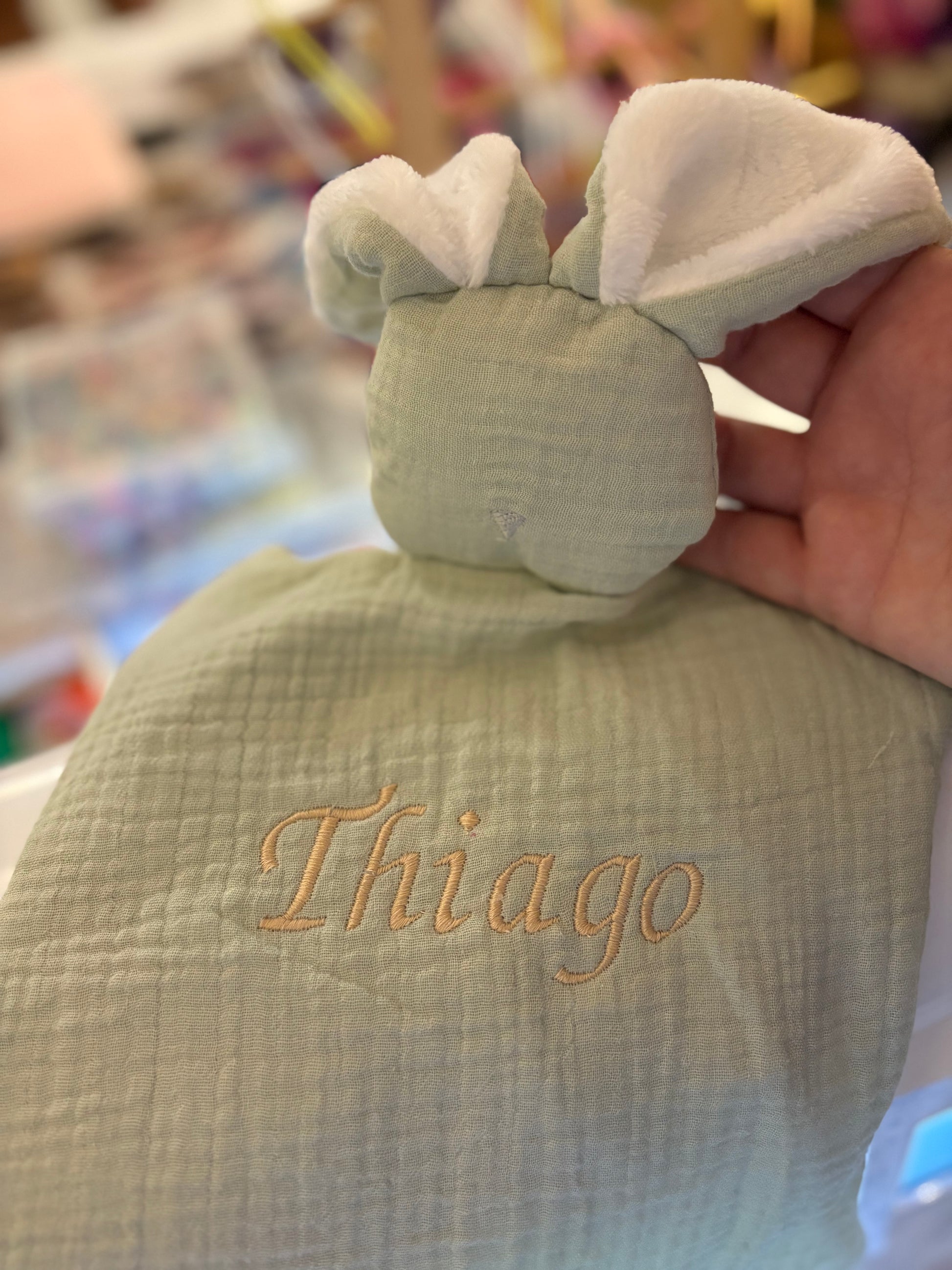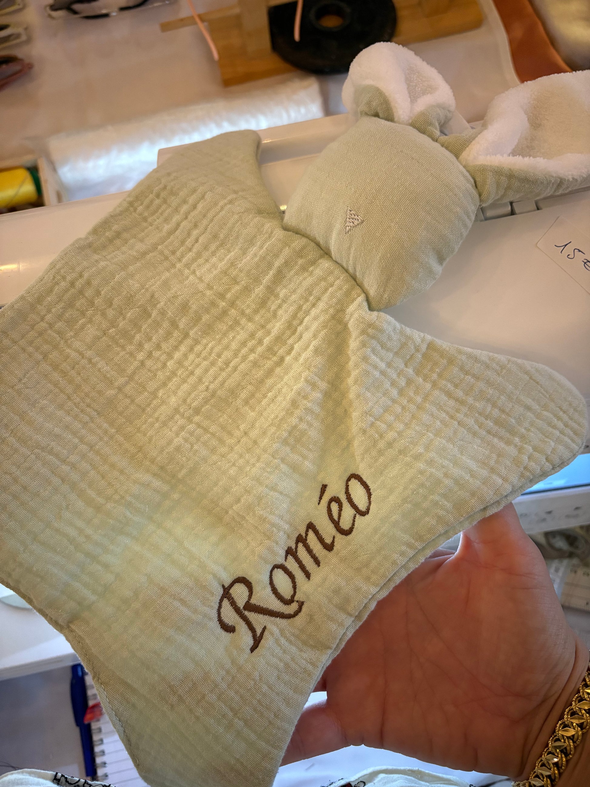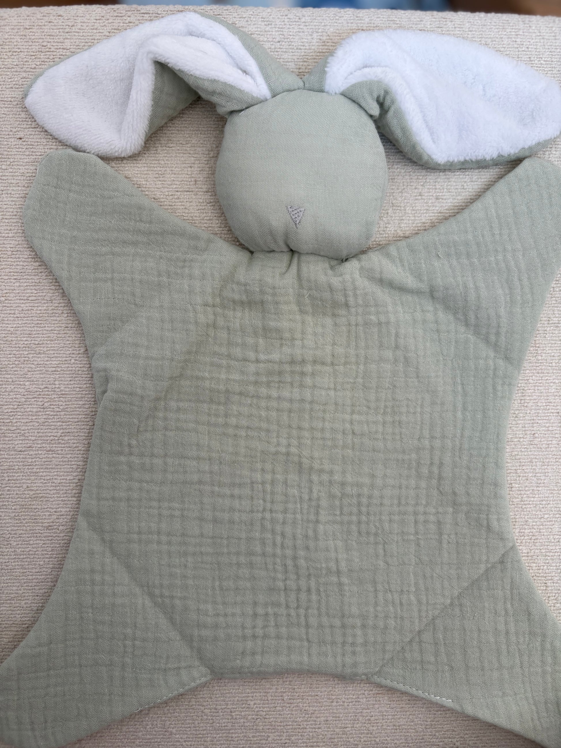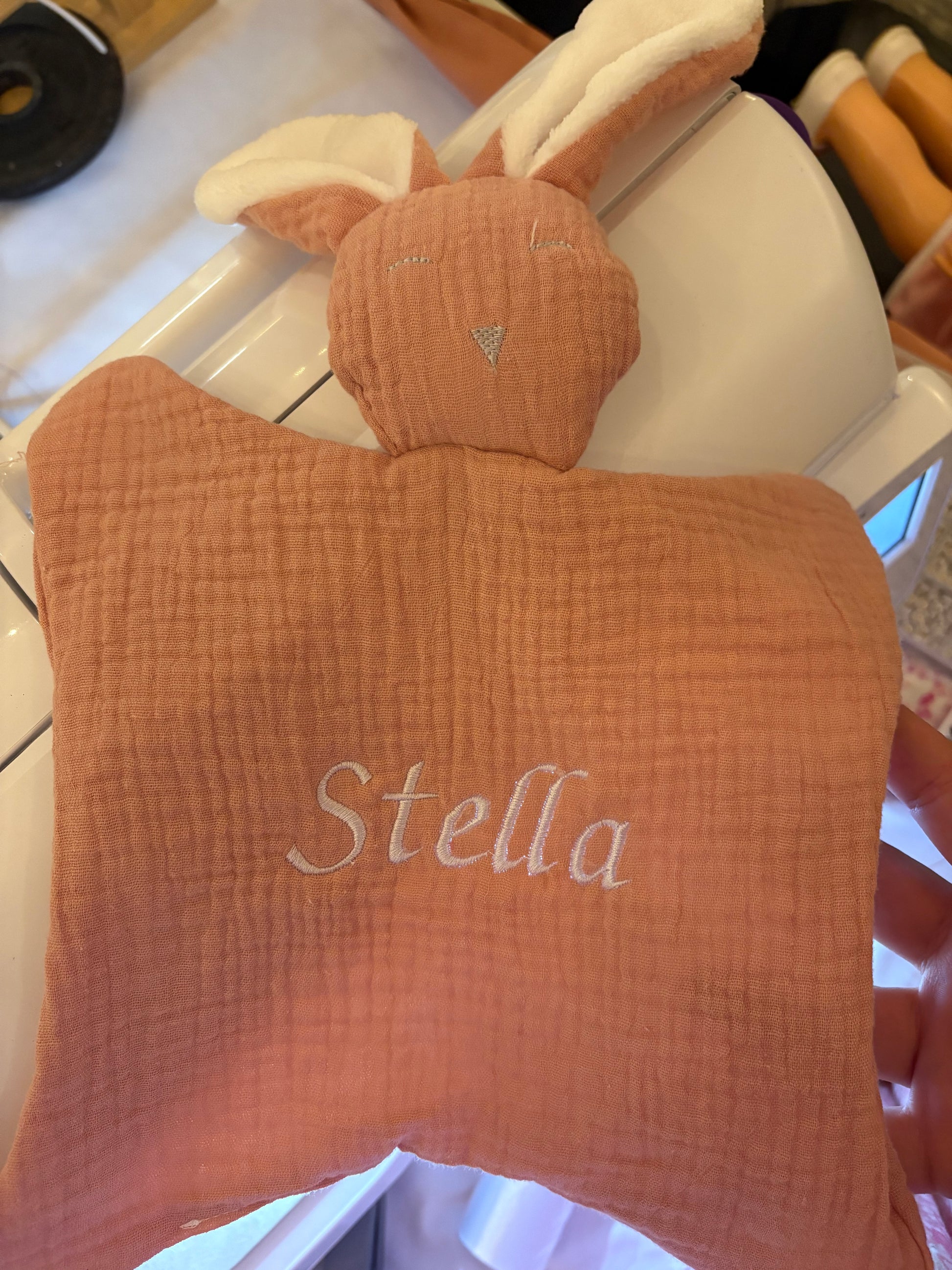 Doudou lapin en coton, personnalisé sur commande (délai 3 jours).
