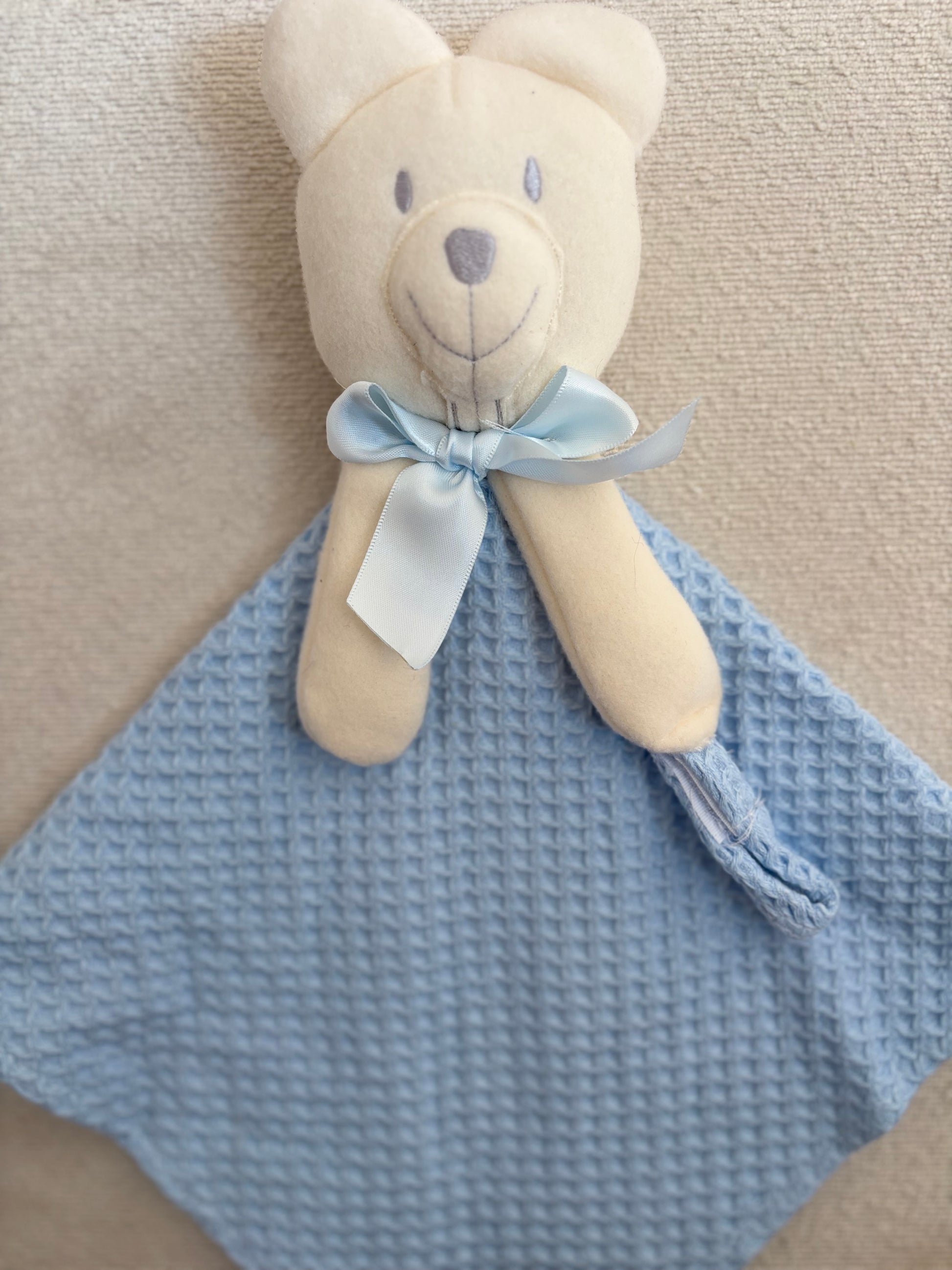 Doudou ours en coton nid d’abeille. Personnalisation sur commande (3 jours).