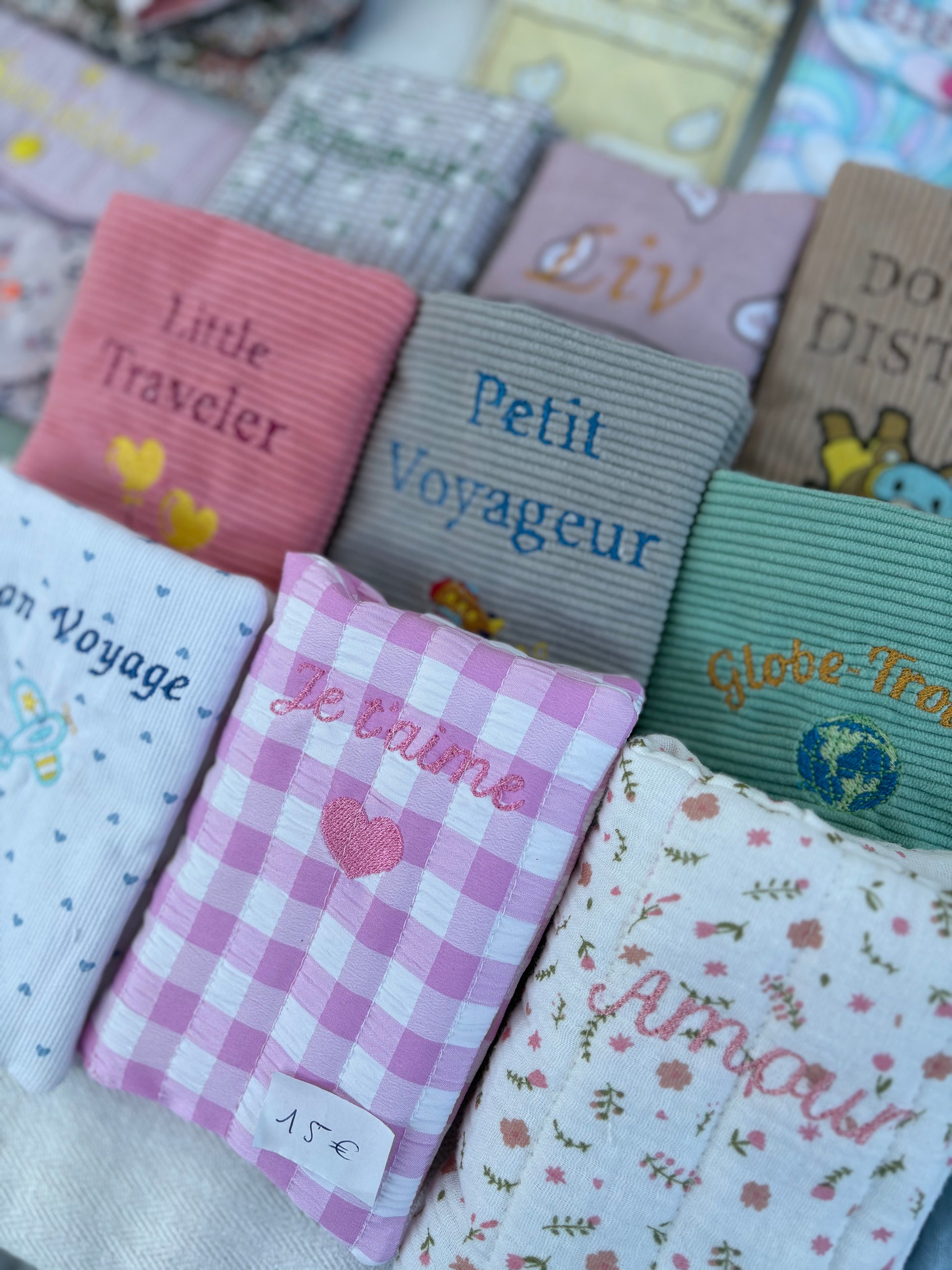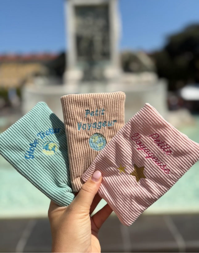 Protège-passeport en tissu, fait main et personnalisable. Choisissez votre tissu, puis indiquez la broderie souhaitée, la typographie et la couleur de fil dans le champ Remarque personnalisée.